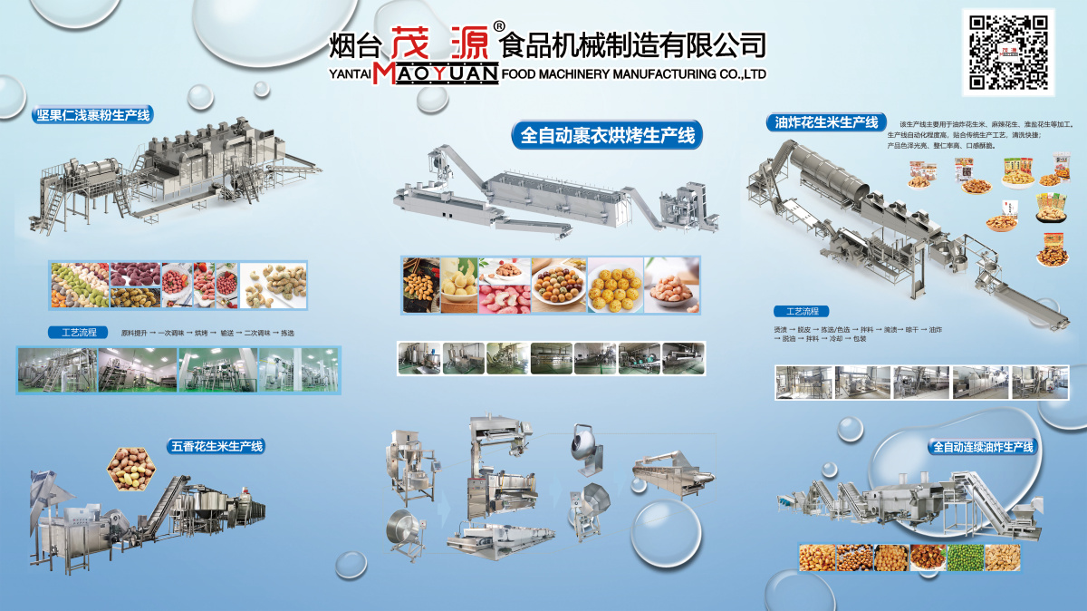 煙臺茂源食品機(jī)械制造有限公司成立于1995年,是集自主研發(fā)、專業(yè)制造、廠家直銷、售后服務(wù)于一體的食品機(jī)械制造企業(yè),國家高新技術(shù)企業(yè)、3A誠信示范單位、山東省守合同重信用公示企業(yè)、中國食品工業(yè)協(xié)會(huì)堅(jiān)果炒貨專業(yè)委員會(huì)常務(wù)理事單位,公司長期致力于油炸、烘烤、脫皮、裹衣等多種工藝性設(shè)備及自動(dòng)生產(chǎn)線的研發(fā)創(chuàng)新,擁有多項(xiàng)新型實(shí)用專利。