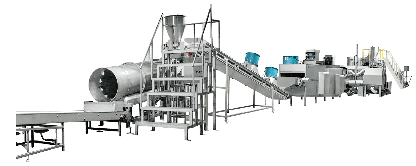 廣泛應用于花生、扁桃仁、腰果等堅果仁及籽仁的裹粉油炸加工。設備集中控制,自動化程度高,工藝適用性強,產品油炸色澤好。
